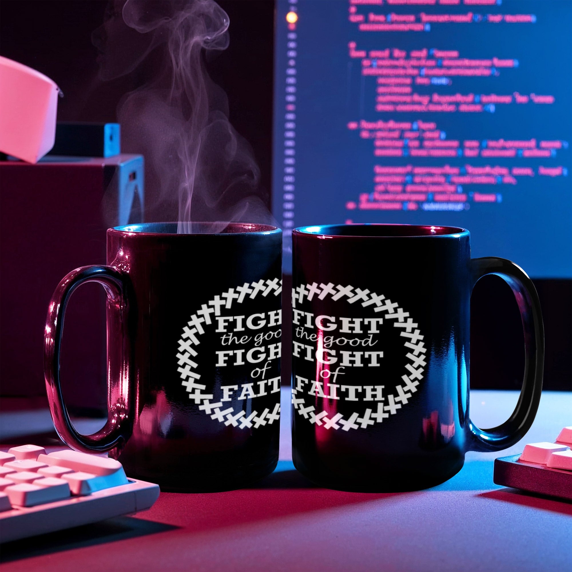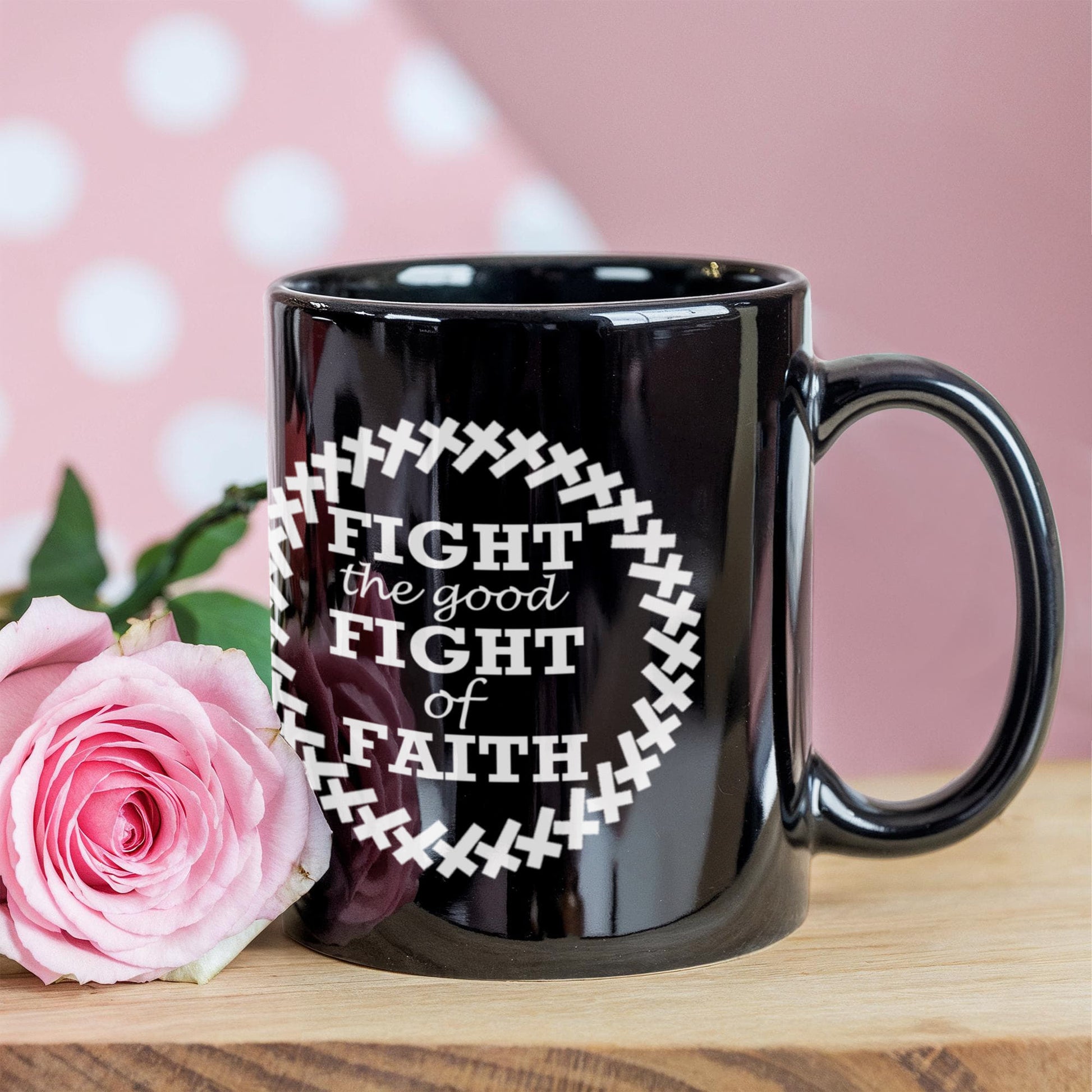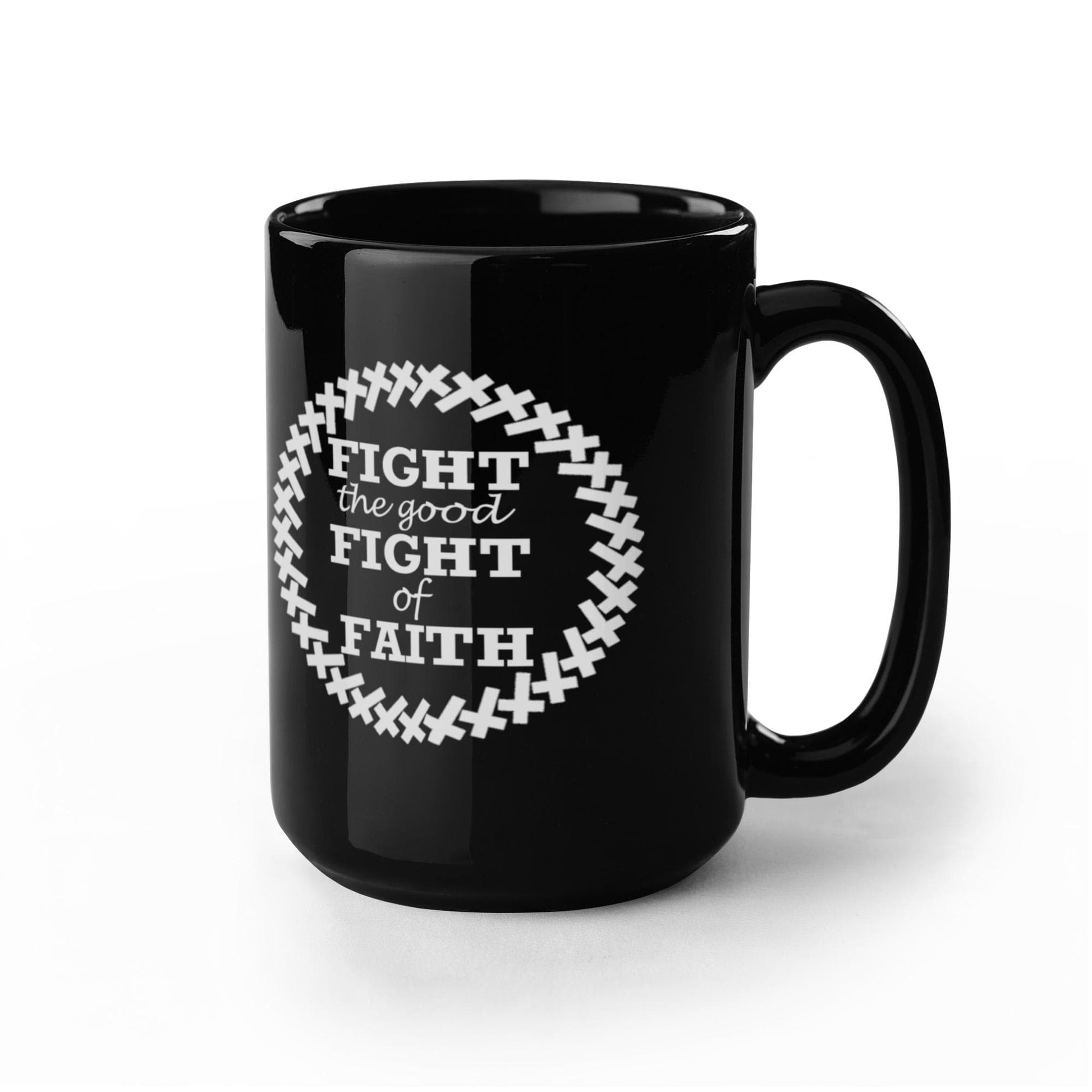 Fight The Good Fight Of Faith - Black Ceramic Mug 11oz. & 15oz. - Gift for Her - Gift for Him