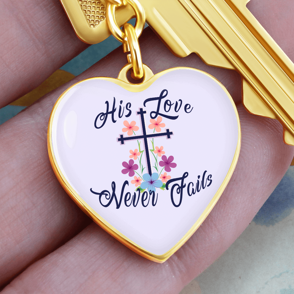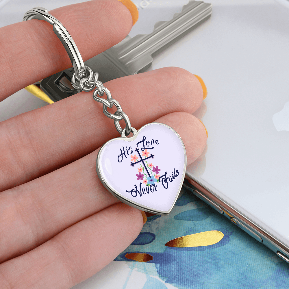 His Love Never Fails - Graphic Heart Keychain - Gift for Her