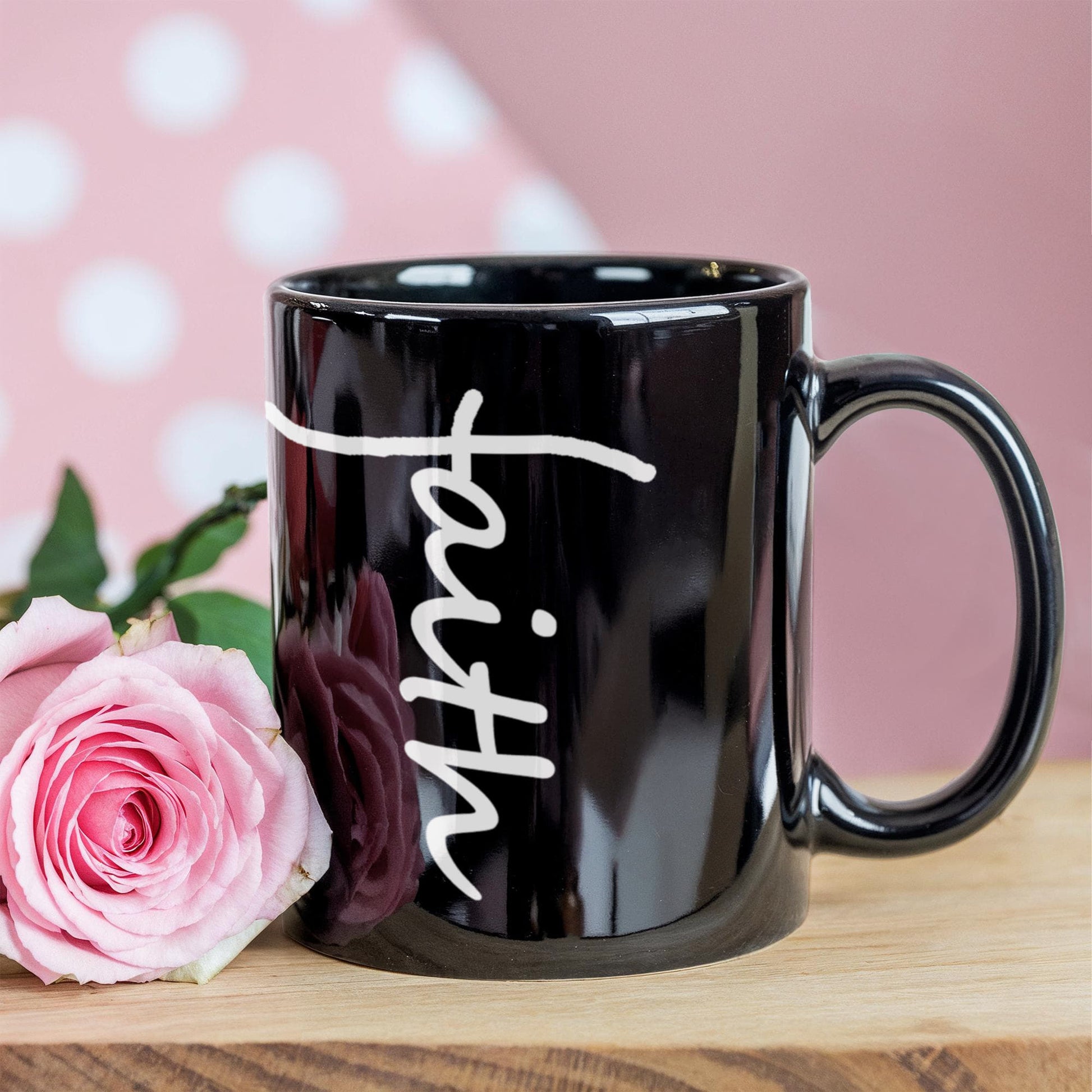 Faith (White) - Black Ceramic Mug 11oz. & 15oz. - Gift for Her - Gift for Him