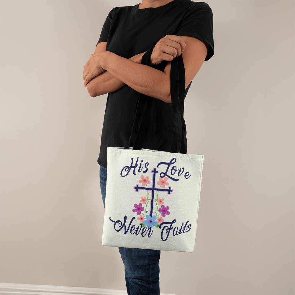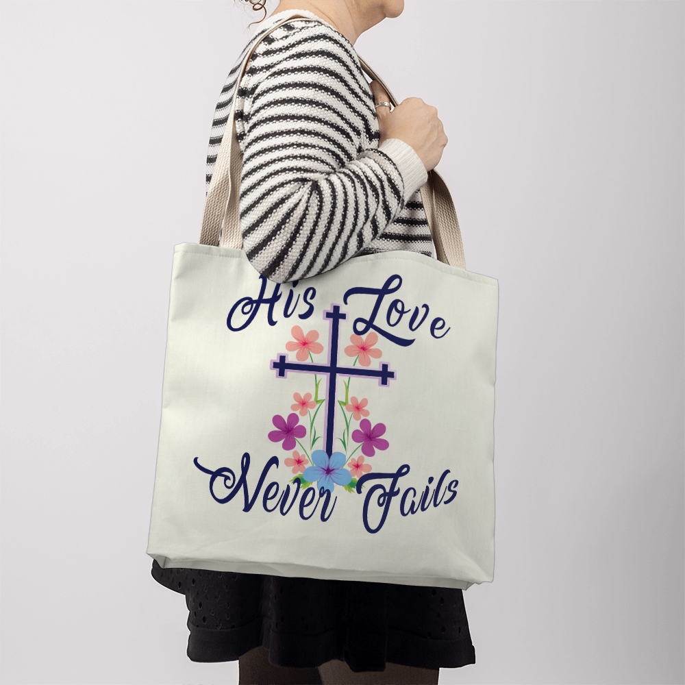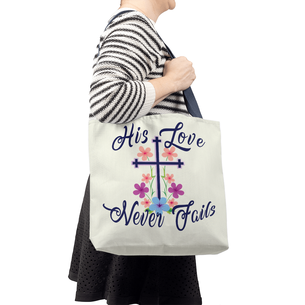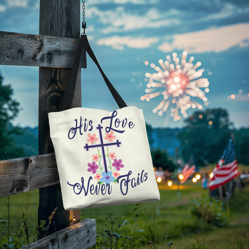 His Love Never Fails - 12oz Enamel Camping Mug - Gift for Her