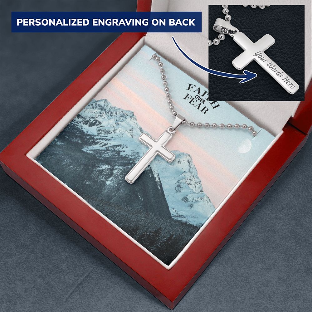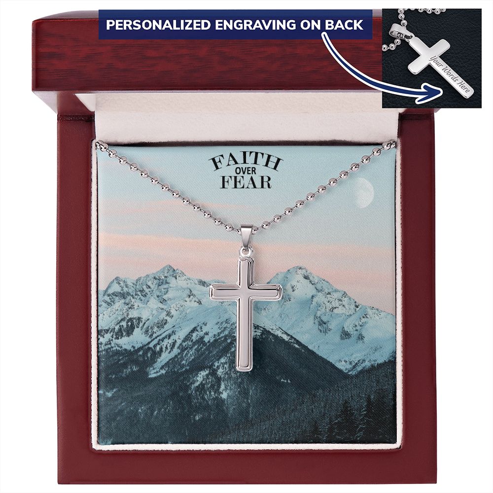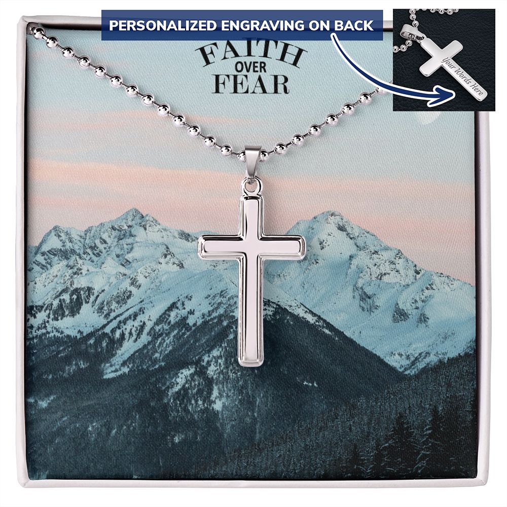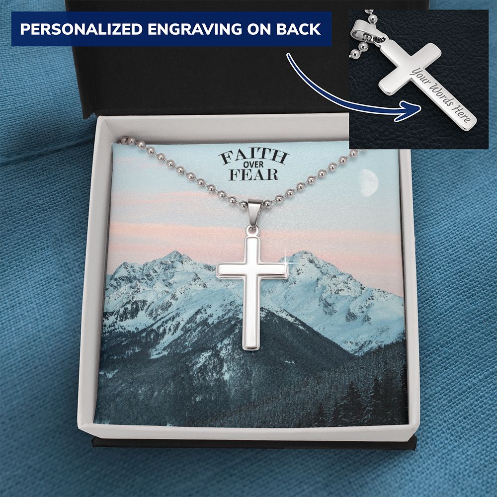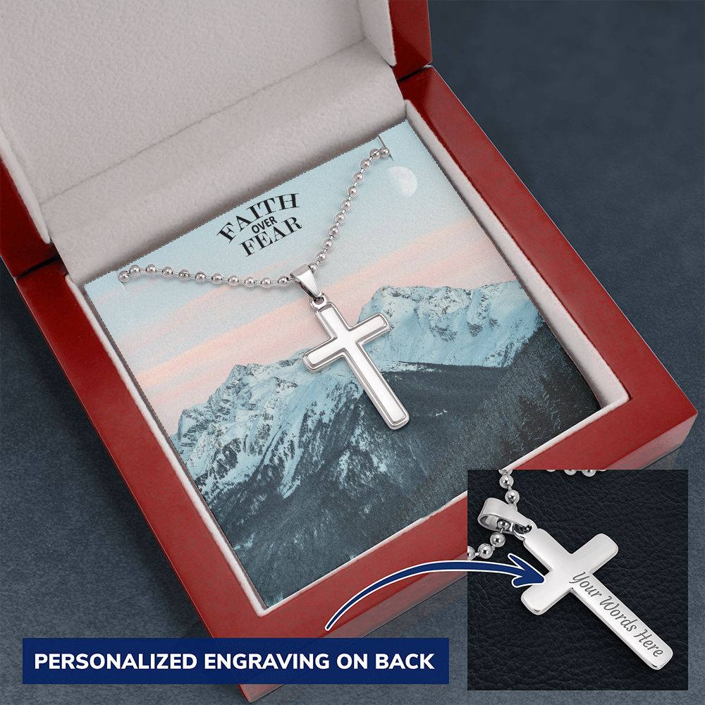 Faith Over Fear - Personalized Cross Necklace - Gift for Him - Gift for Her