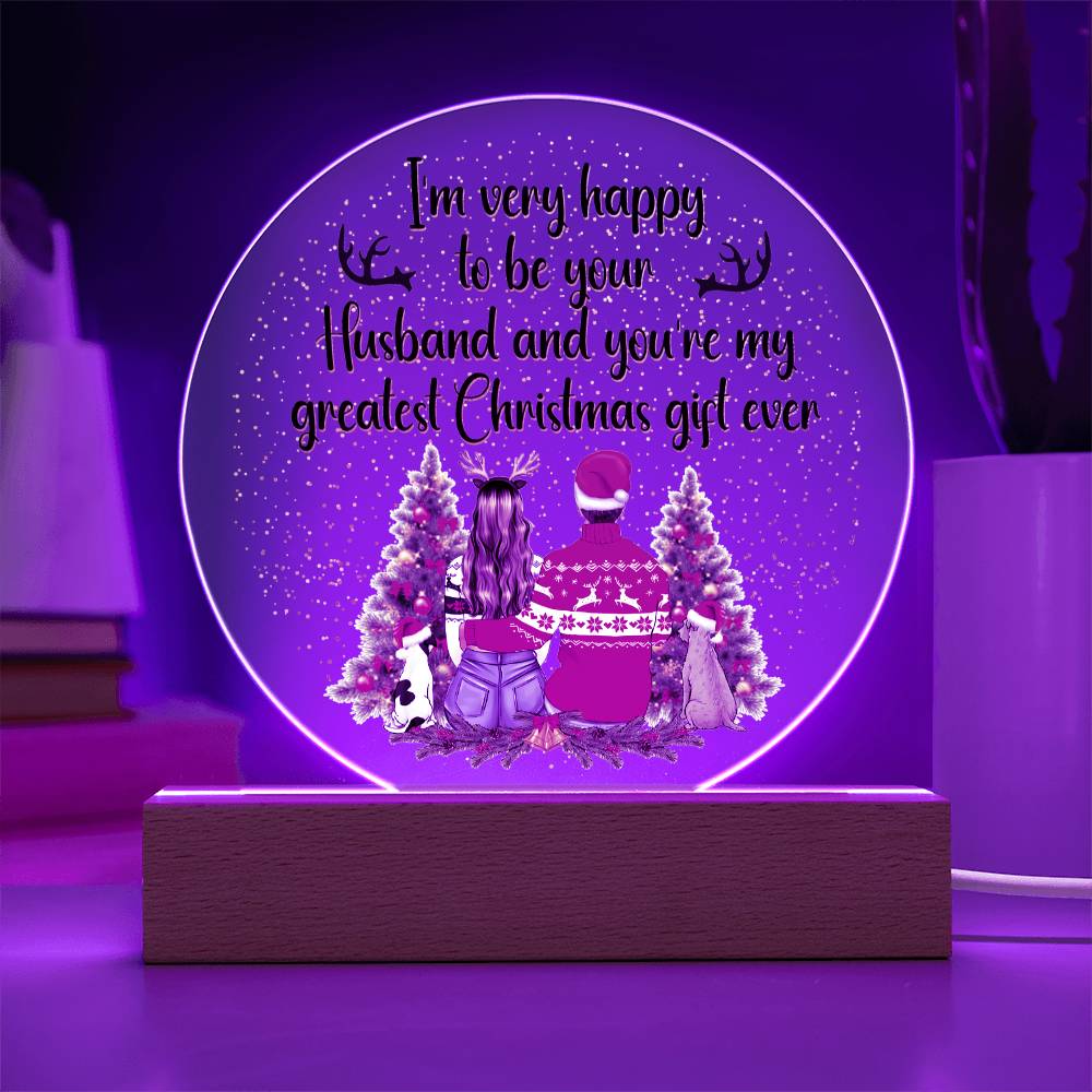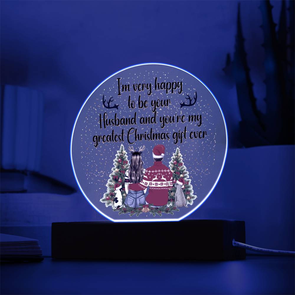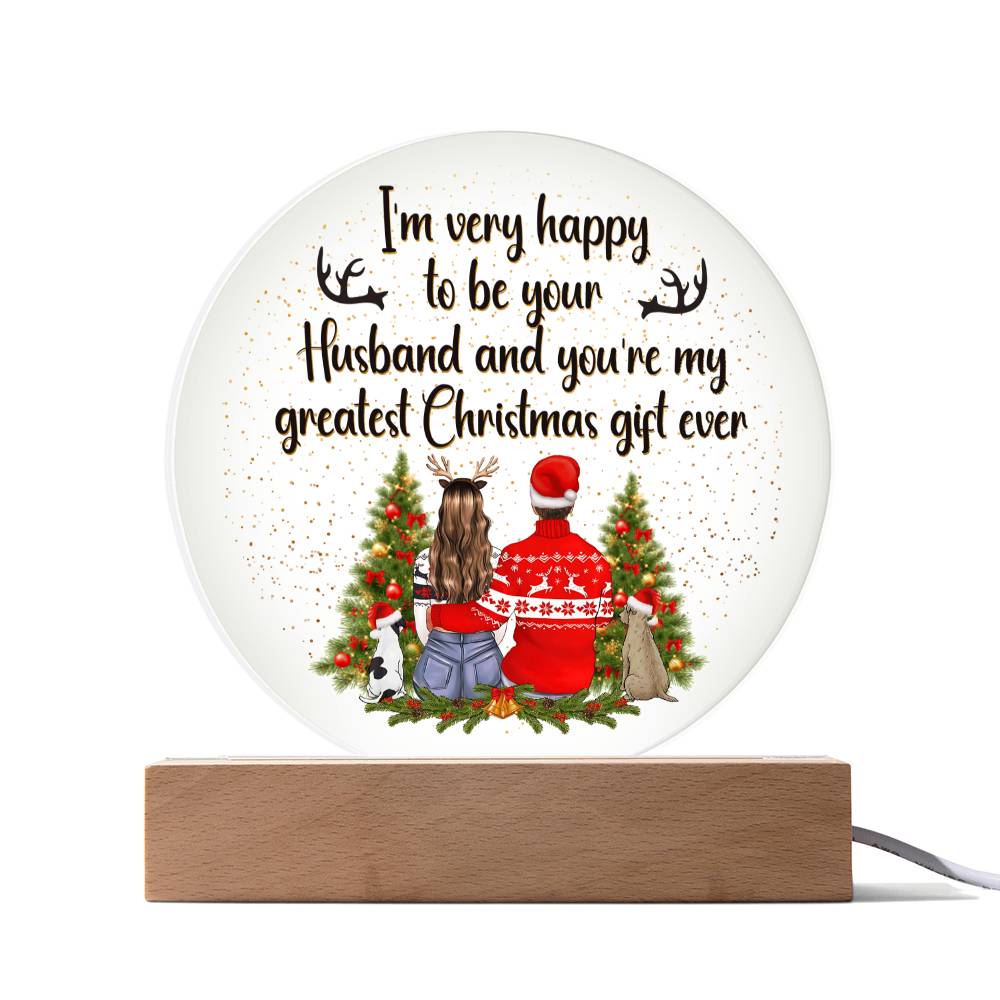 I'm Very Happy To Be Your Husband & You're My Greatest Christmas Gift Ever - Printed Circle Acrylic Plaque - Gift for Wife