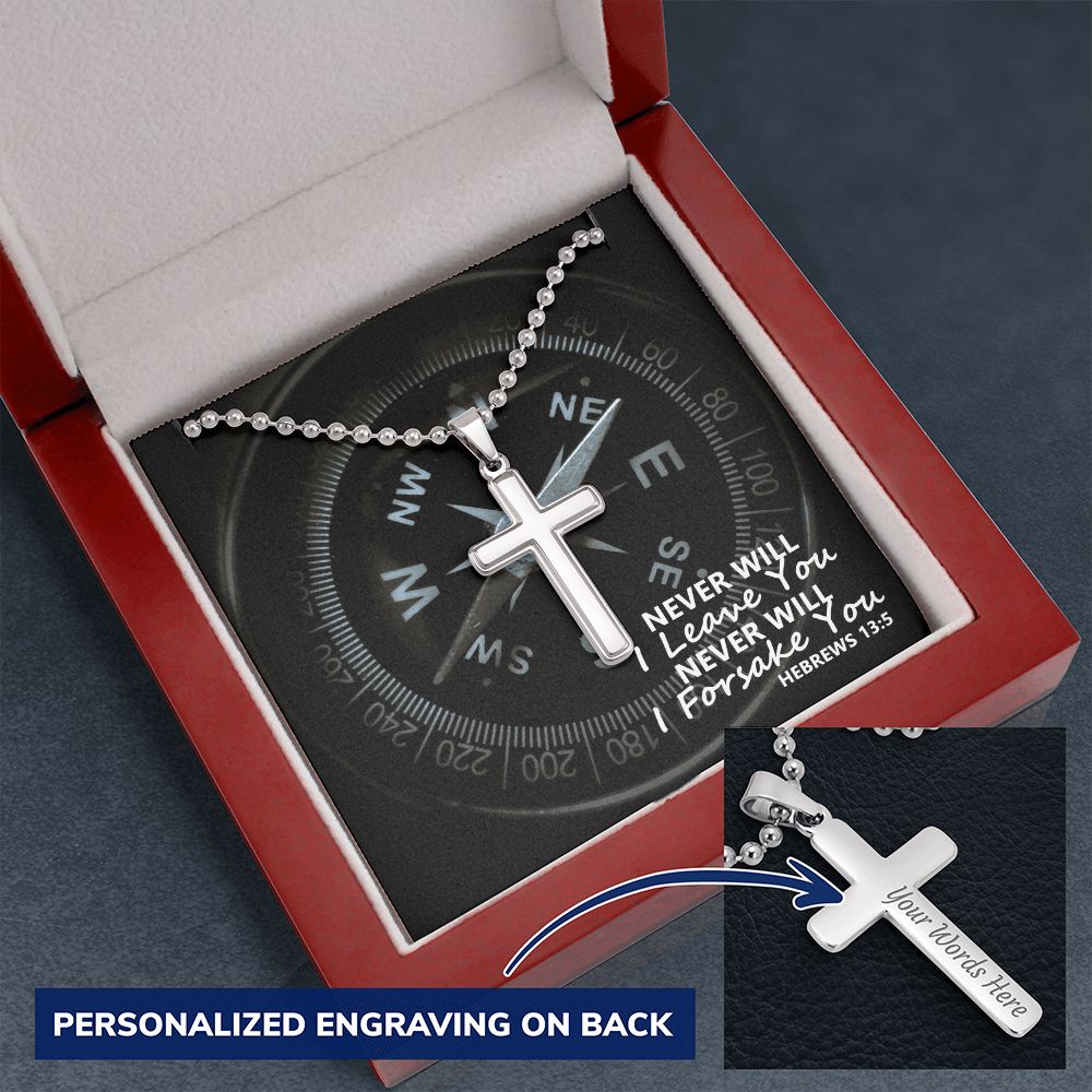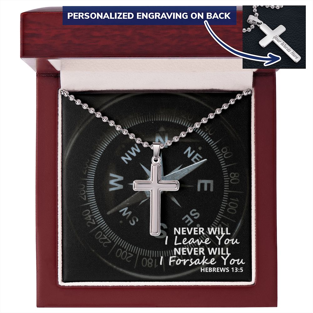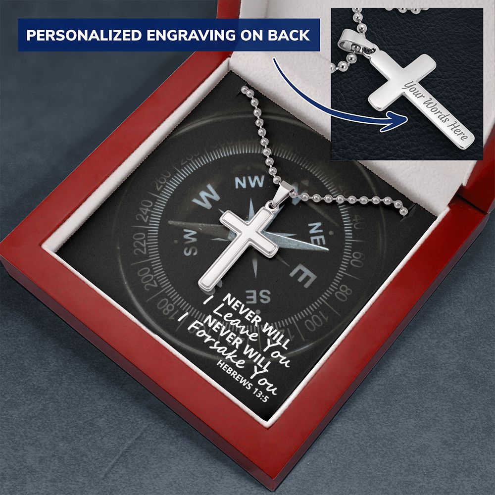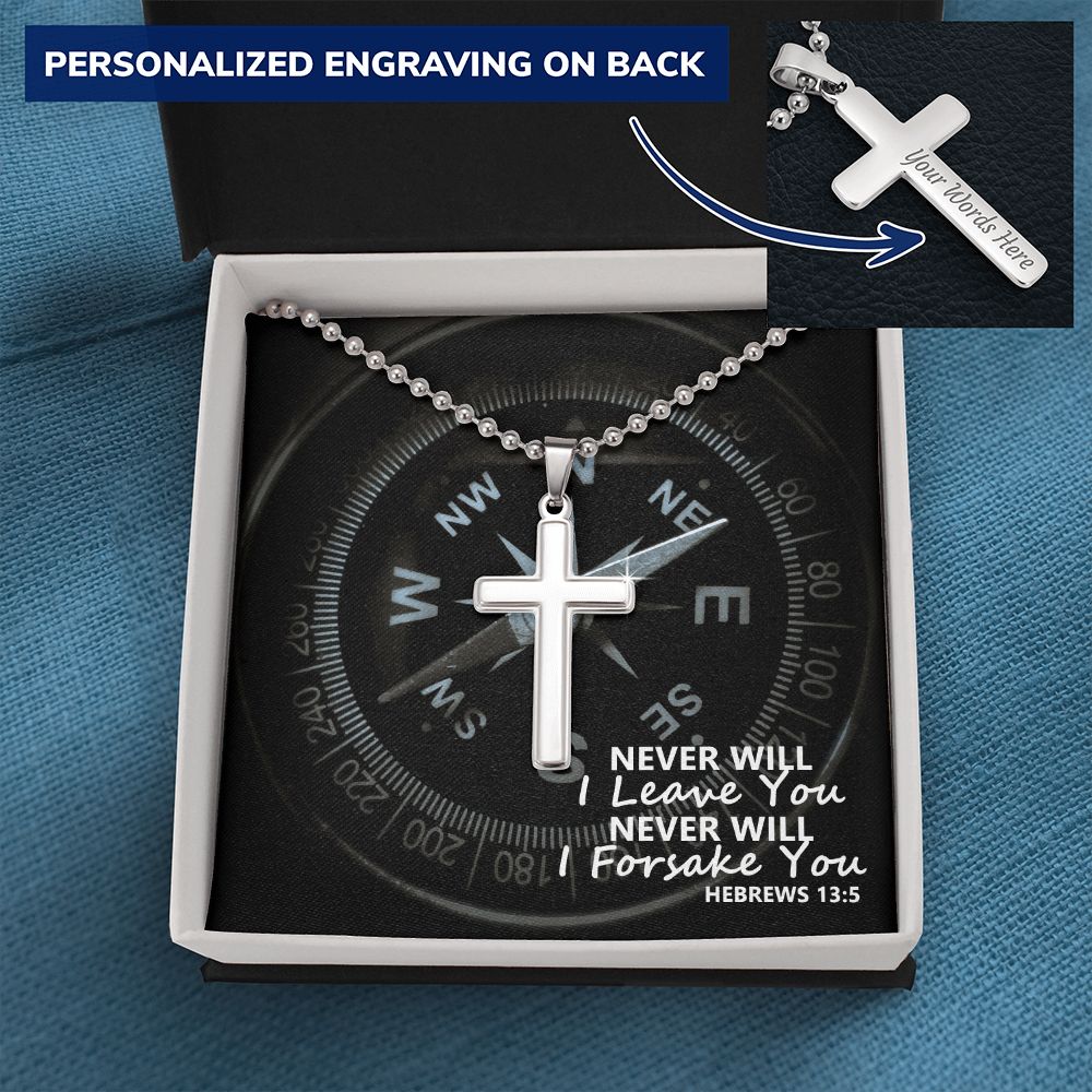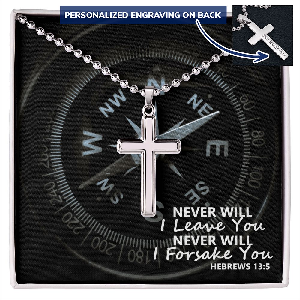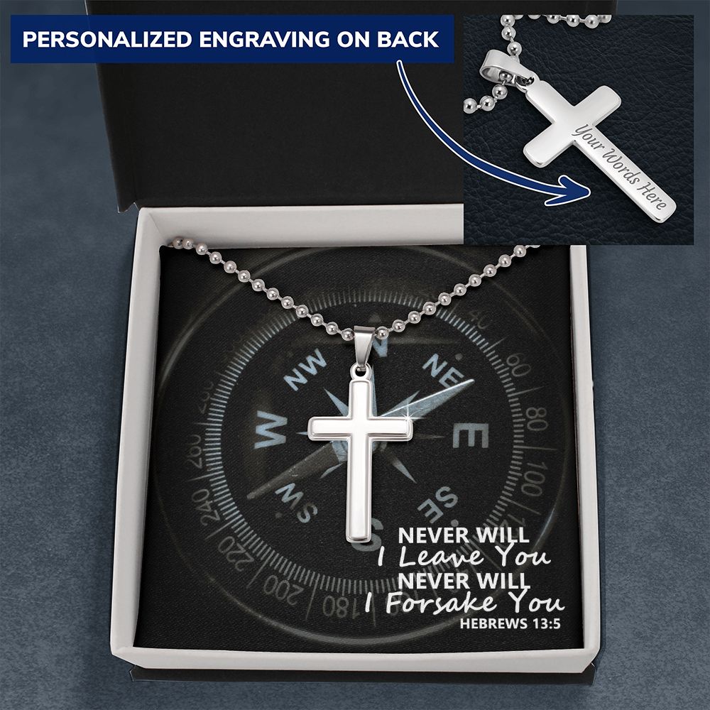 Never Will I Leave You, Never Will I Forsake You - Personalized Cross Necklace - Gift for Him - Gift for Her