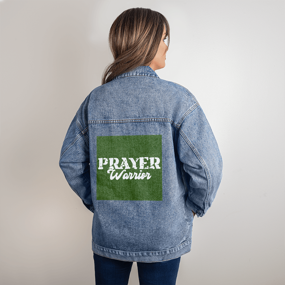 Prayer Warrior - Oversized Women's DTG Denim Jacket - Gift for Her