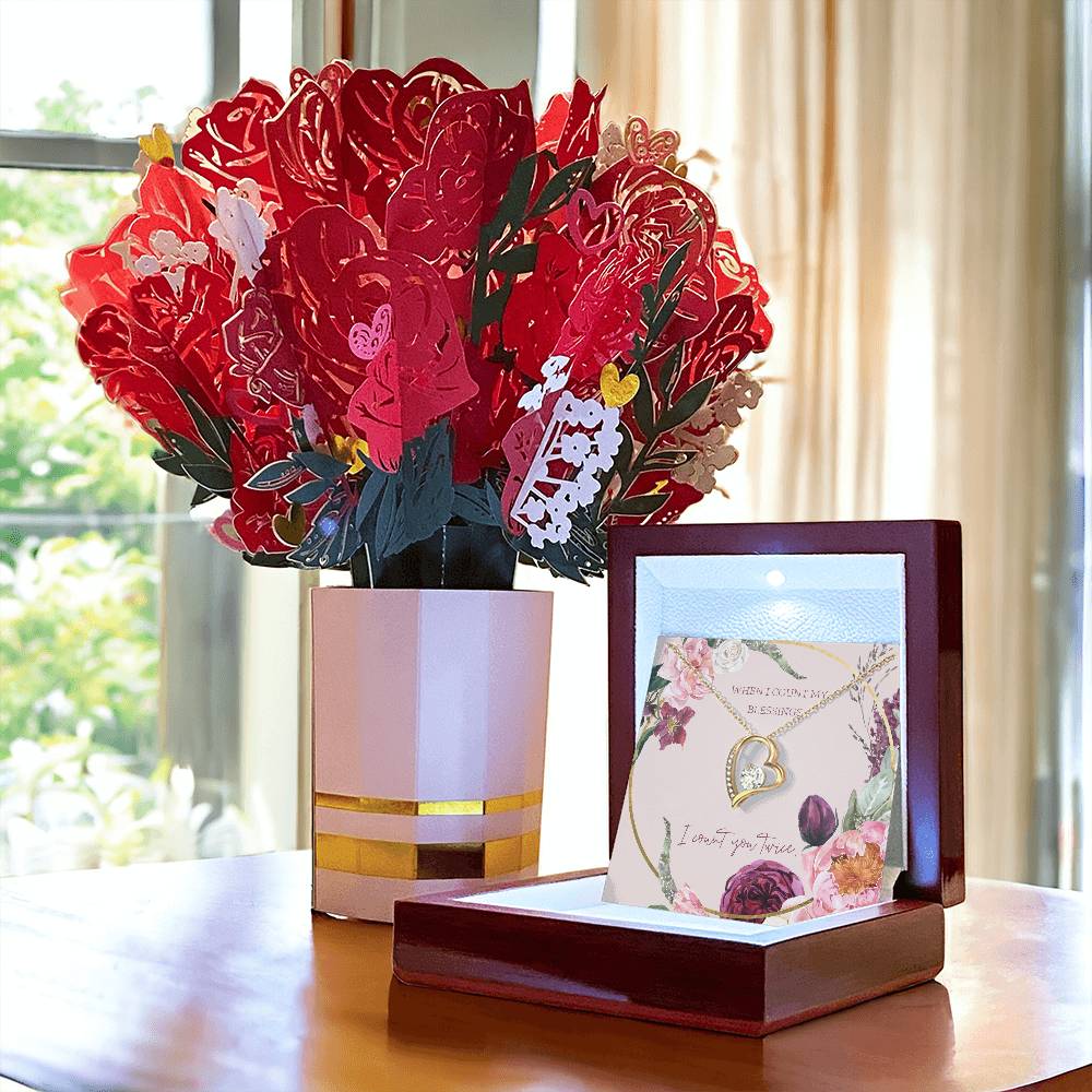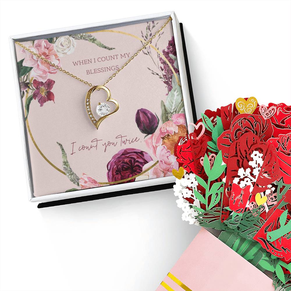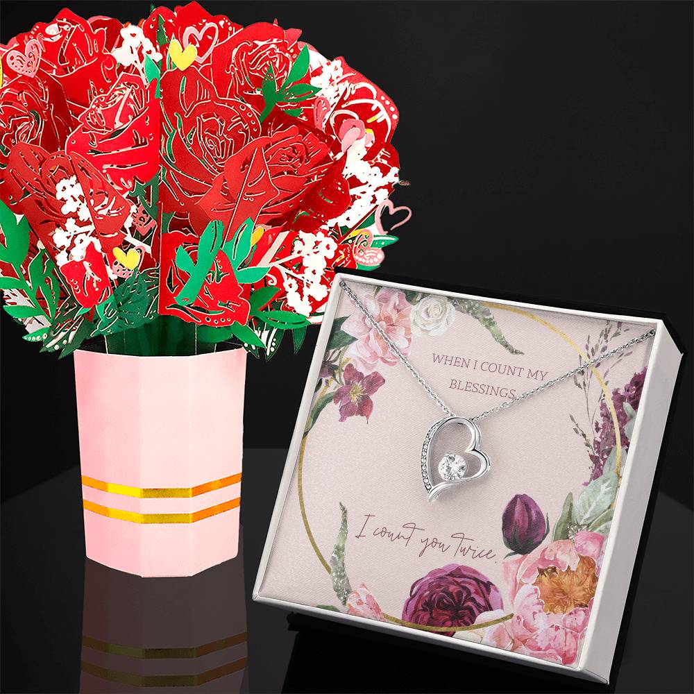 When I Count My Blessings, I Count You Twice - Forever Love Necklace & Sweetest Devotion Flower Bouquet - Gift for Wife - Gift for Girlfriend